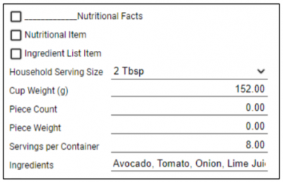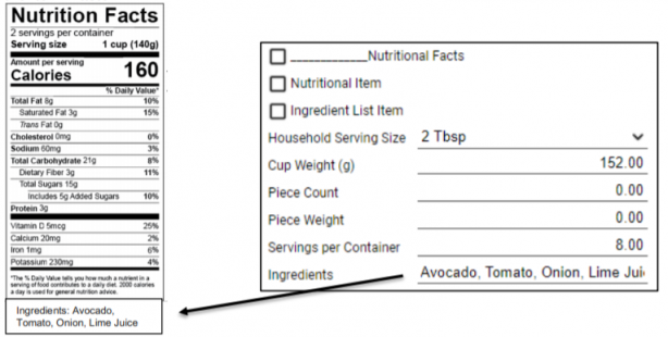 The output from this field when printed will read “Ingredients: Avocado, Tomato, Onion, Lime Juice, Cilantro, Sea Salt.”